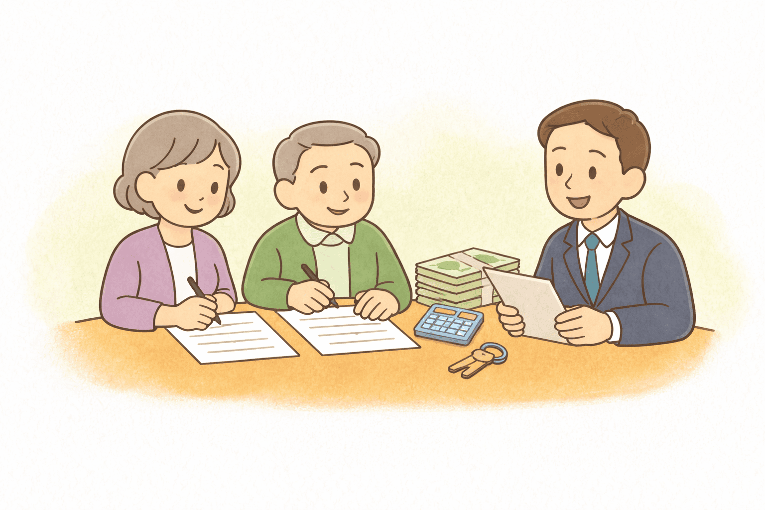 高齢の方や外出が難しい事情がある場合など、自宅で契約を行うこともあります。場所は自宅であっても、手続きの内容は通常の売買契約と同じで、宅地建物取引士による説明のもと正式に進められます。
