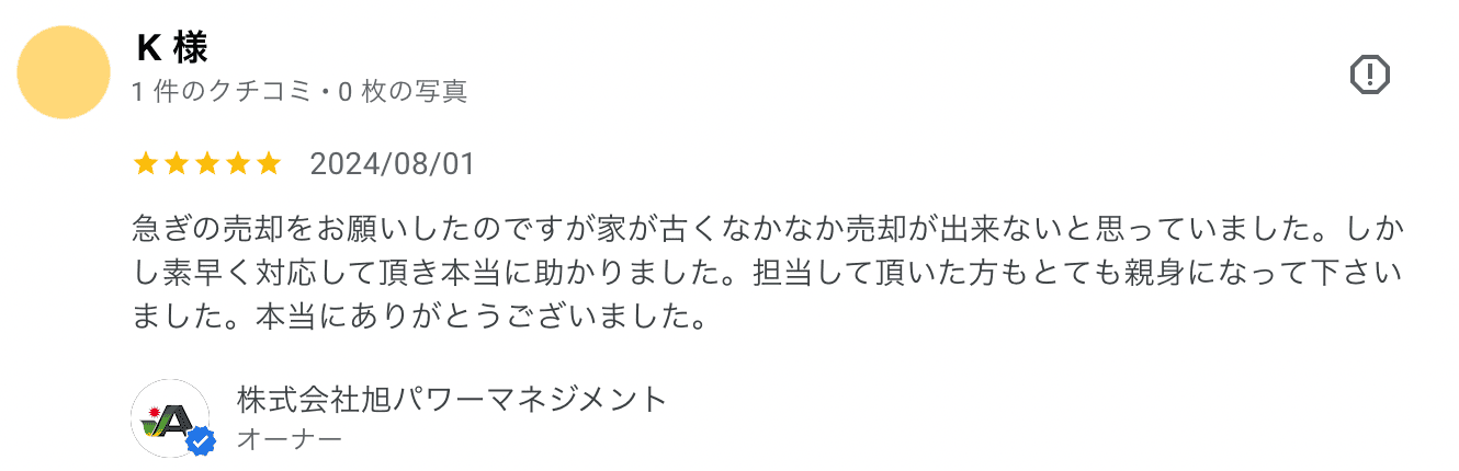 今回は、姫路で急ぎの戸建て売却を、ご相談いただいたお客様からのGoogle口コミをご紹介します。