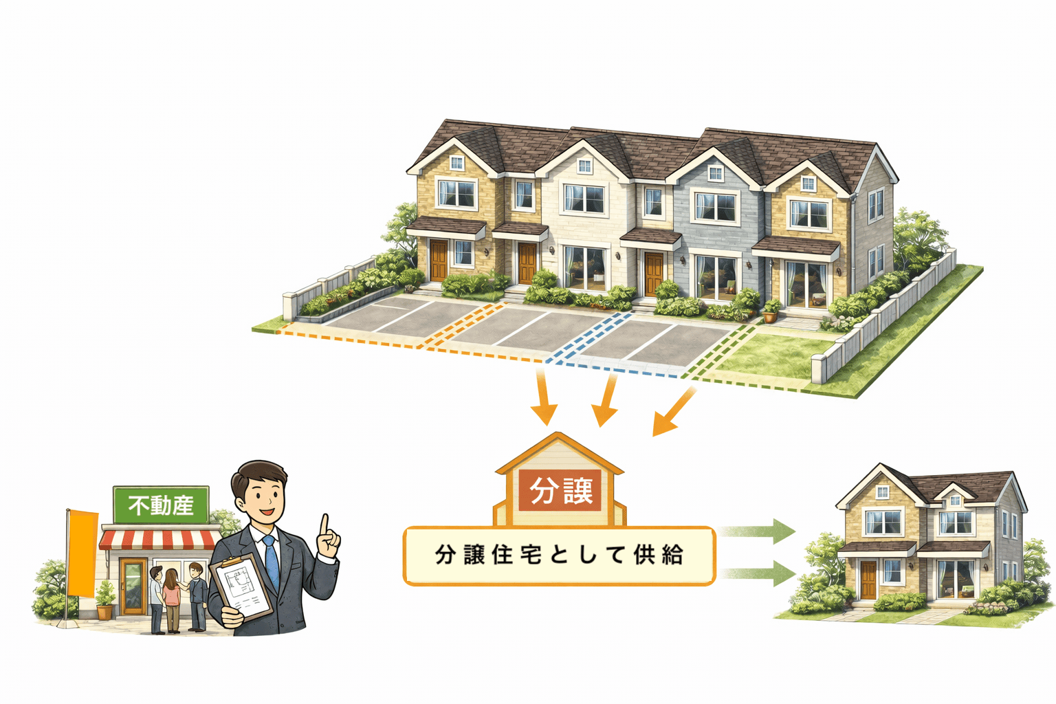 タウンハウスは分譲住宅として供給されるケースが多いです。