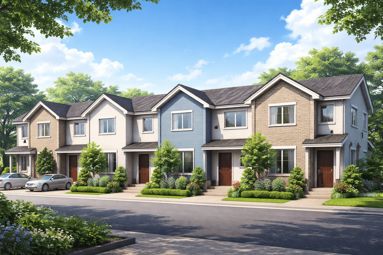 タウンハウスは、分譲マンションと同じように、住戸の広さに応じて土地を共有しているケースが多いのが特徴です。建物は各住戸ごとに所有しますが、土地については住民全体で共有する形になります。